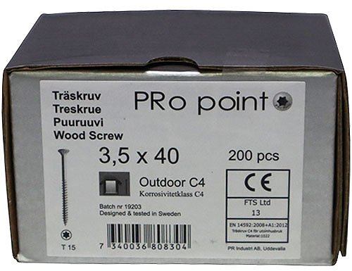 Træskrue C4 3,5 x 40 Torx 15 (200 stk.)